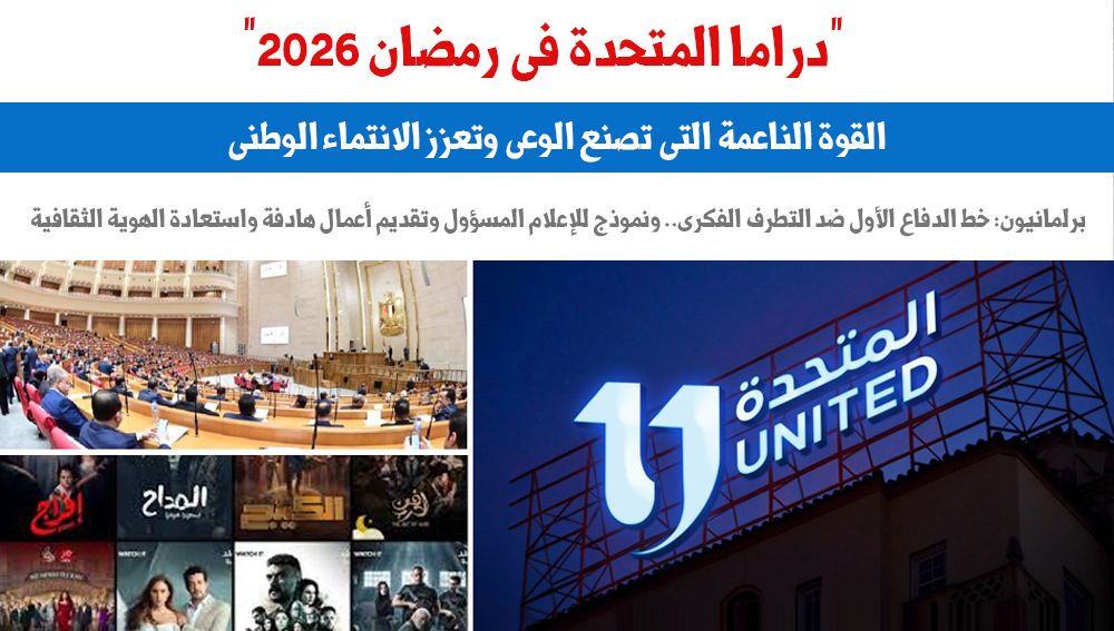 "دراما المتحدة فى رمضان 2026".. القوة الناعمة التى تصنع الوعى وتعزز الانتماء الوطنى.. برلمانيون: خط الدفاع الأول ضد التطرف الفكرى.. ونموذج للإعلام المسؤول وتقديم أعمال هادفة واستعادة الهوية الثقافية