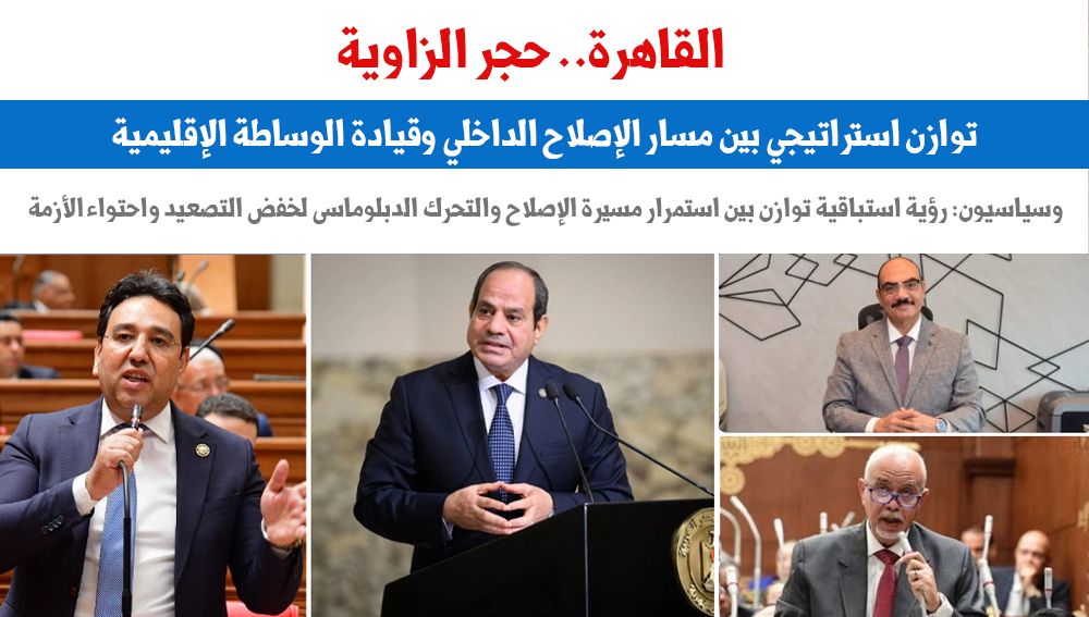 "القاهرة حجر الزاوية".. جهود القيادة السياسية لا تتوقف لترسيخ الاستقرار.. سياسيون: رؤية استباقية توازن بين استمرار مسيرة الإصلاح والتحرك الدبلوماسى لخفض التصعيد..ويؤكدون: القاهرة فى قلب تحركات الوساطة الدولية