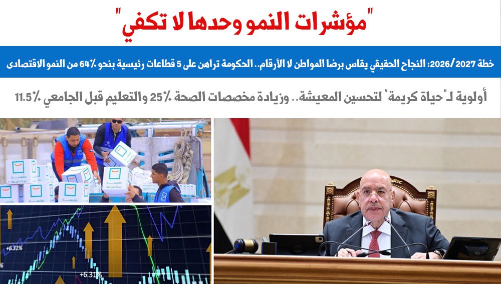 "النواب" يحيل خطة التنمية الاقتصادية والاجتماعية العام المالي 2026/ 2027 إلى مجلس الشيوخ