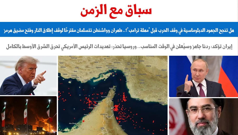 سباق مع الزمن.. هل تنجح الجهود الدبلوماسية في وقف الحرب قبل "مهلة ترامب"؟.. طهران وواشنطن تتسلمان مقترح لوقف إطلاق النار وفتح مضيق هرمز.. وإيران تؤكد: ردنا جاهز وسيٌعلن في الوقت المناسب..وروسيا تحذر
