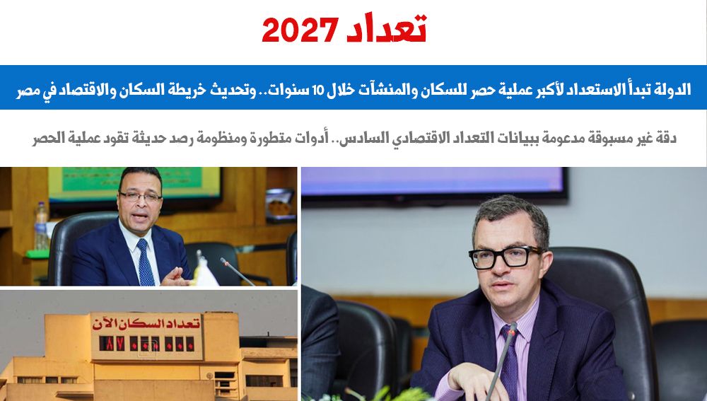 تعداد 2027..الدولة تبدأ الاستعداد لأكبر عملية حصر للسكان والمنشآت خلال 10 سنوات..كواليس تجهيزات "الإحصاء" لتحديث خريطة السكان والاقتصاد..دقة غير مسبوقة مدعومة ببيانات التعداد الاقتصادي..ومنظومة حديثة تقود الحصر