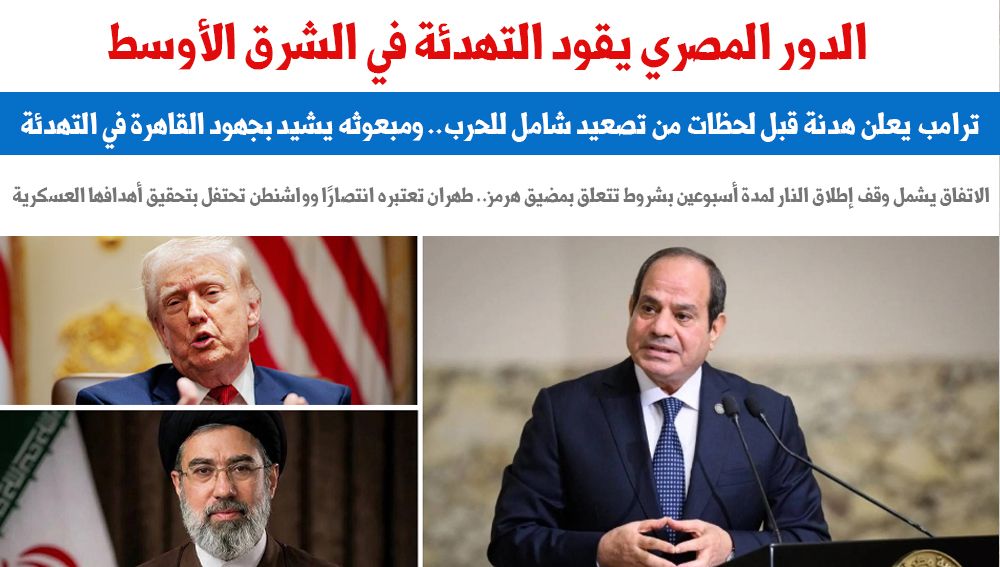 الرئيس السيسي يرحب باتفاق وقف إطلاق النار بين أمريكا وإيران.. ويؤكد:خطوة تثلج صدور محبي السلام.. نثمن استجابة ترامب لصوت العقل وندعو لاتفاق دائم يعيد الاستقرار للمنطقة.. ونشدد على دعم دول الخليج والأردن والعراق