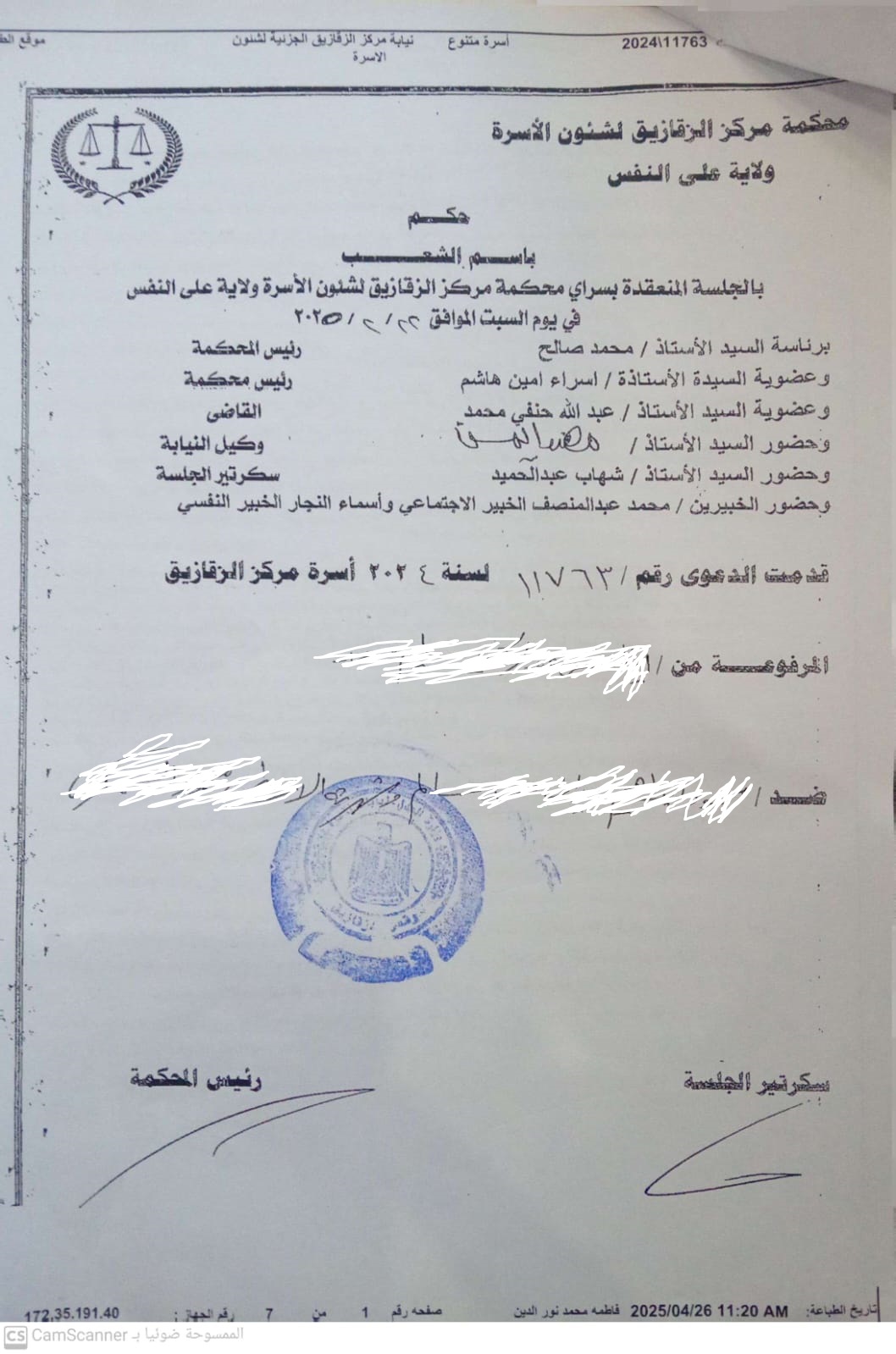 صدر الحكم في الدعوى رقم 11763 لسنة 2024 أسرة مركز الزقازيق، لصالح المحامى محمد المرصفاوى، برئاسة المستشار محمد صالح، وعضوية المستشارين اسراء أمين هاشم، وعبد الله حنفي محمد، وبحضور كل من وكيل النيابة مهنا أيمن، وأمانة سر شهاب عبد الحميد.