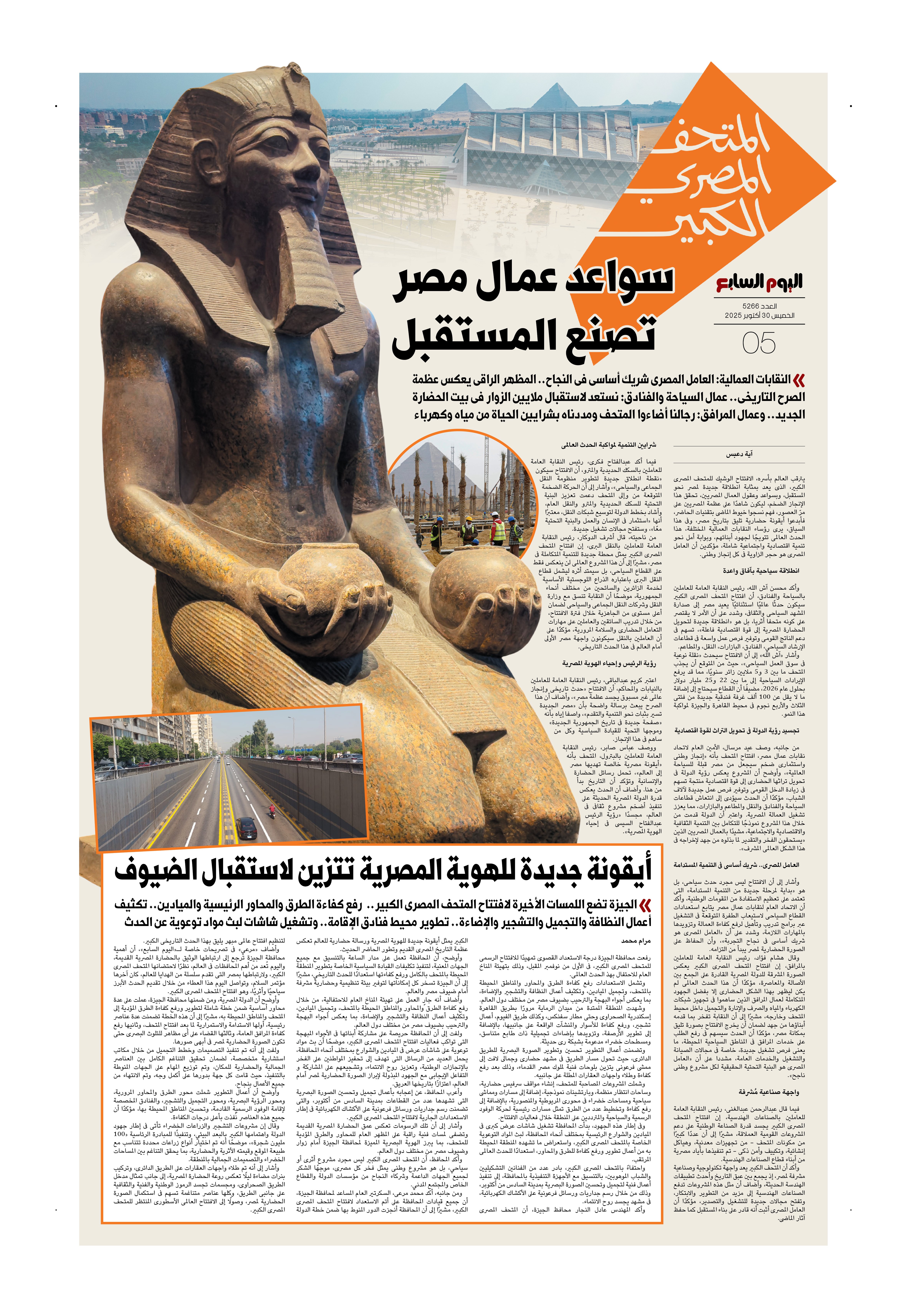 سواعد عمال مصر تصنع المستقبل.. النقابات العمالية: العامل المصرى شريك أساسى فى النجاح.. المظهر الراقى يعكس عظمة الصرح التاريخى.. عمال السياحة والفنادق: نستعد لاستقبال ملايين الزوار فى بيت الحضارة الجديد المتحف المصرى الكبير
