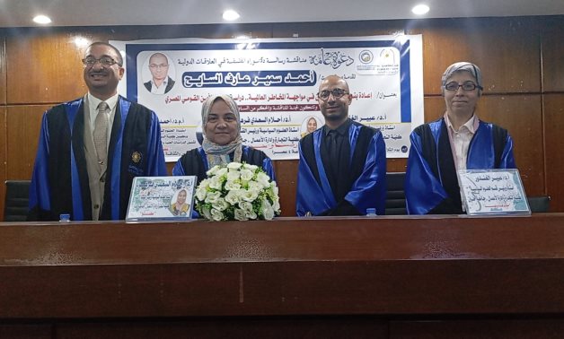 وبعد نحو ساعتين ونصف من المناقشة، أصدرت اللجنة حكمها بمنح الباحث درجة دكتوراة الفلسفة في العلاقات الدولية، وأشادت بما بجهود الباحث وما استعرضته الدراسة من تجربة مصر لمواجهة المخاطر العالمية الجديدة وفق مفهوم أمني شامل.